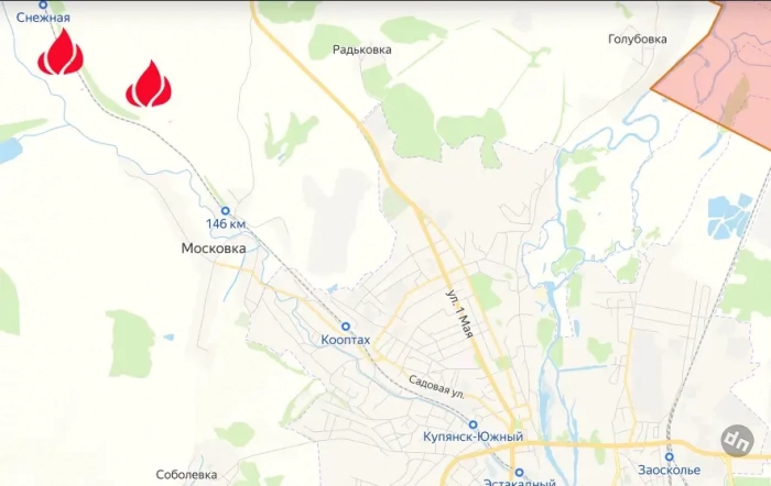 До улицы 1 Мая, в которую переходит дорога Р79 на севере этого ключевого для восточной части Харьковской области транспортно-логистического узла остаются считанные километры. Продвигаются наши войска и к югу от Купянска - в районе Загрызово, в том числе по направлению к пгт Боровая.