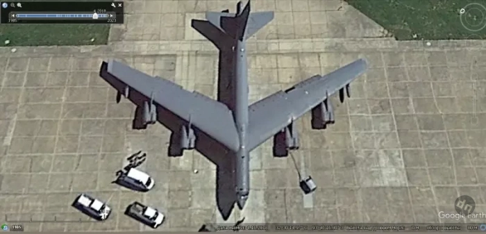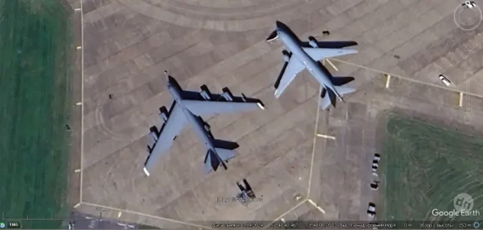 Спутниковый снимок Gооglе Еarth: бомбардировщик В-52Н на авиабазе Барксдейл