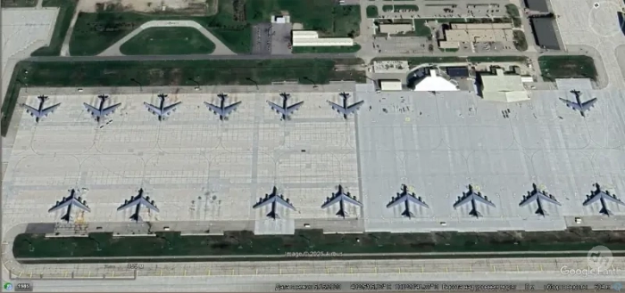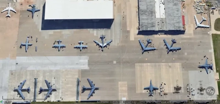 Спутниковый снимок Gооglе Еarth: бомбардировщики В-52Н на авиабазе Андерсен