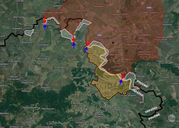 «ВС РФ закрепились у балки Бабак к востоку от Олешни, а в Гуево идут бои за центральную часть», - отмечает канал.