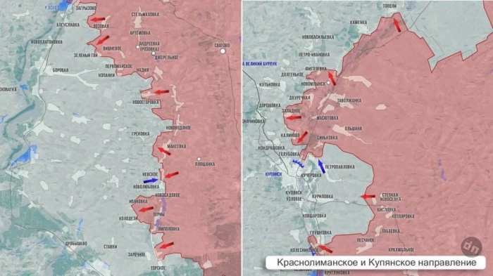 На Краснолиманском участке бои вблизи Нового и Катериновки. Если этот плацдарм объединится с тем, что в районе Макеевки, образуется довольно крупный оперативно-тактический плацдарм на западном берегу Жеребца. Западные аналитики сообщают, что ВС РФ сосредоточили на этом участке силы, в 10 раз превышающие потенциал ВСУ. Основными целями удара они называют Лиман и Боровую.