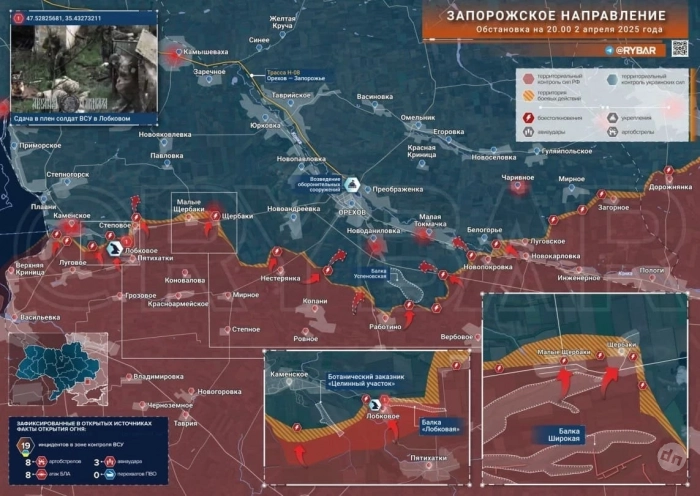 С Запорожского участка сообщают, что Лобковое фактически перешло под контроль ВС РФ, а наши штурмовики уже выходят к окраинам Каменского. В районе Щербаков армия России начала пробиваться на север вдоль дороги к Степногорску. Примерно в 2 км к северу проходит основная линия обороны врага. В районе Орехова наши бойцы обстреливают логистику и опорники врага, постепенно истощая его ресурсы. По оперативным данным, ВСУ стягивают сюда боеспособные резервы.