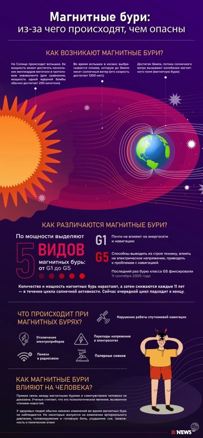 Геомагнитные бури на Земле в последнее время являются частым явлением. Зачастую они возникают с такой силой, что метеочувствительным людям приходится принимать лекарства дабы с их помощью нормализовать своё самочувствие. Свежий прогноз на сегодняшний день - в материале N4k.