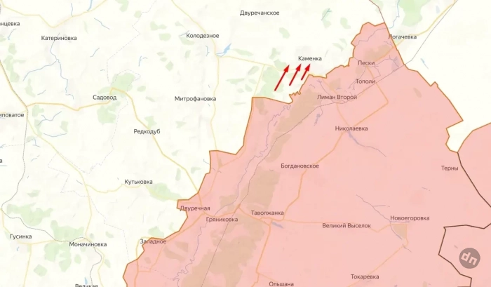 У наших военных есть продвижение в северной части плацдарма в направлении н. п. Каменка.