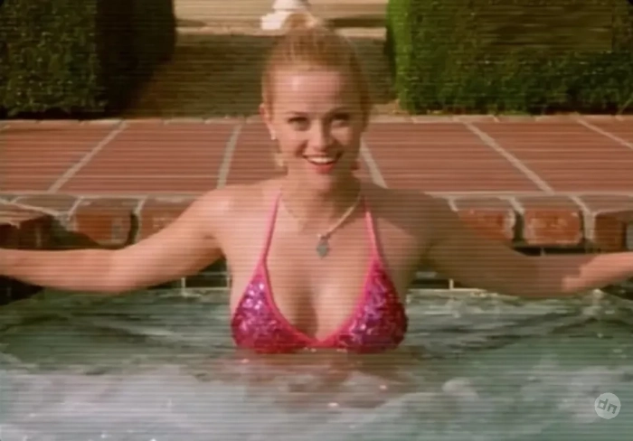 Судя по кадрам из соцсетей, Ава появилась перед камерой в ярко-розовом бикини — в таком же её мама снялась в эпизоде, когда её героиня Элли Вудс записывает видеопрезентацию для поступления в Гарвард, сидя в бассейне. Образы матери и дочери совпали даже в выборе украшений: на Аве была цепочка с буквой V (её героиню зовут Вероника), а на Риз — подвеска Tiffany в форме сердца.