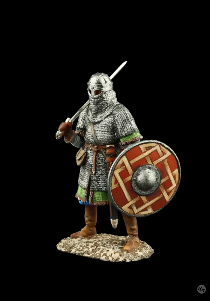 Викинг IX в. в кольчуге и шлеме с кольчужным оплечьем (бармицей). Производители: Silver Dream Studio и Seil Models