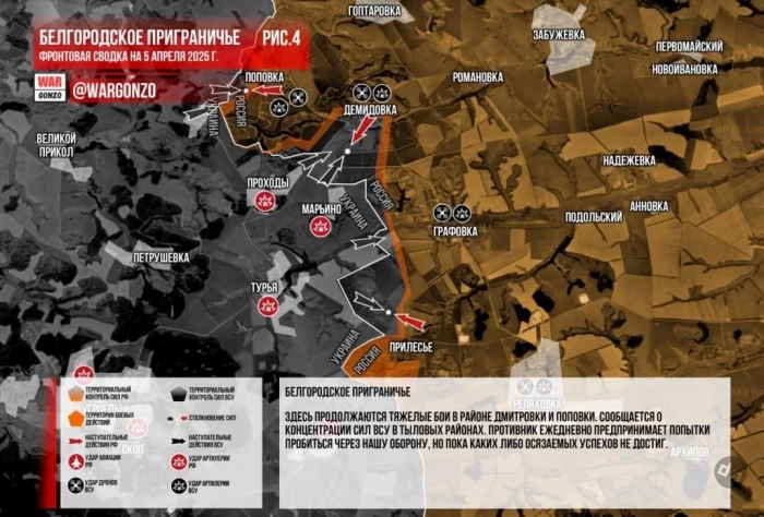 В Белгородской области ВСУ продолжают попытки прорваться: ВС РФ выбивают врага из Демидовки, свежие данные на 06.04.2025