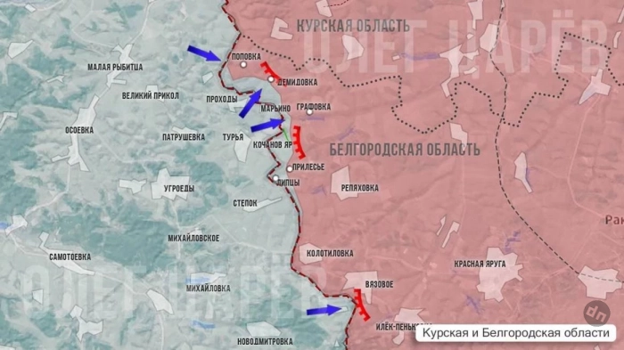 В Демидовке наши выбили врага из нескольких подвалов и хозпостроек на южной окраине. В окрестностях Поповки тоже идёт зачистка. По данным разведки, ВСУ продолжают подтягивать в ближайший район Сумской области орудия полевой артиллерии и РСЗО, по ним бьют наши военные. За сутки уничтожено девять единиц техники, в том числе пять - бронетанковой, отметил Олег Царёв в своём Telegram-канале.