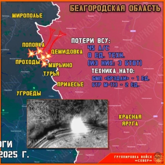 В свою очередь по данным Telegram-канала "Северный ветер", накануне группировка войск "Север" уничтожала живую силу и технику противника, пытавшегося прорваться в Белгородскую область, и продолжила освобождение Суджанского приграничья