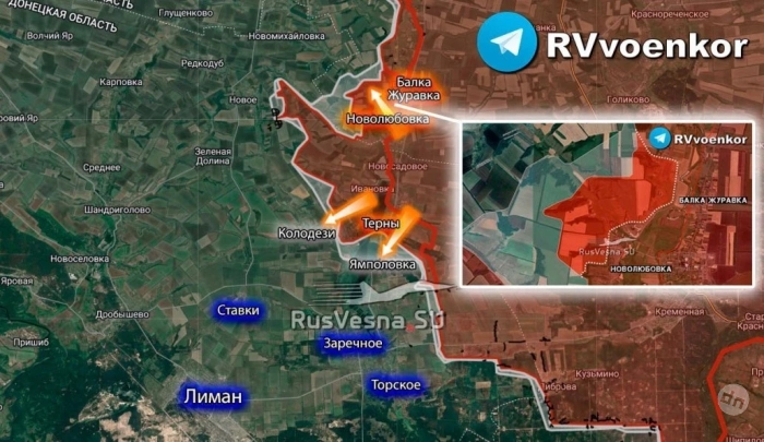 На Краснолиманском участке ВС РФ продвигаются районе Колодезей. Наши стремятся к рубежу Шандриголово-Новосёловка-Дробышево, который наши военные долгое время обороняли осенью 2022. В направлении Зелёной Долины ВС РФ расширили контроль на 300 м. По последним данным, наши вошли в Новое, что на рокадной трассе снабжения гарнизона врага в Красном Лимане, который является по сути восточным воротами в Славянск.