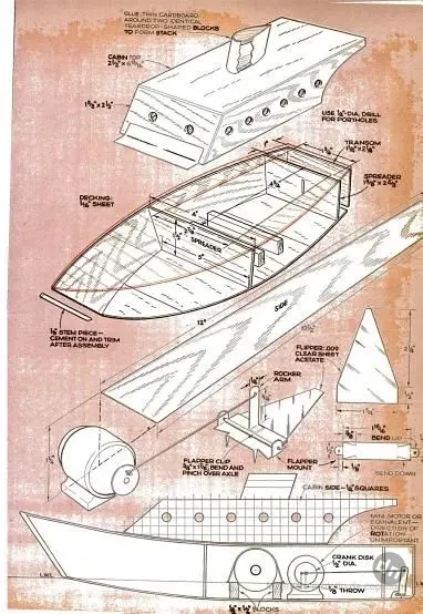 Некоторые самоделки носили явно экспериментальный характер и были явно рассчитаны на развитие технической жилки самодельщиков. Например, среди них был вот такой «шлёп-шлёп» – катерок без винта, передвигающийся за счёт горизонтальных ударов «хвоста», то есть по аналогии с китами. Позднее, рассказ об этом движителе в применении его к модели грузовой баржи появился в журнале «Юный техник»