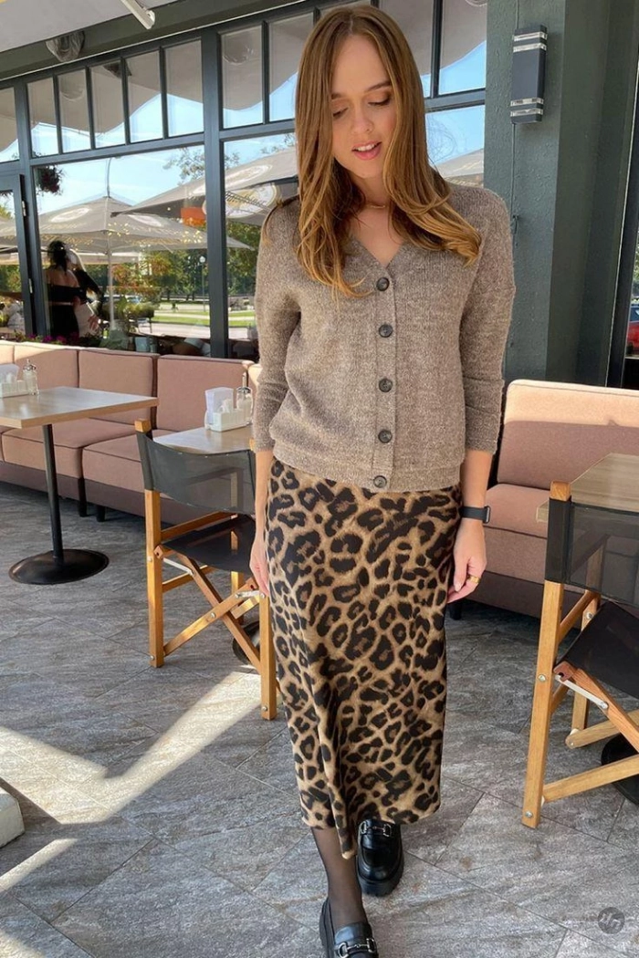 Юбки с принтами под леопарда, зебру или питона снова на пике популярности — но теперь в нестандартных расцветках: от неона до пудрово-серого. Модель может быть максимально лаконичной — прямой крой, миди-длина, минимальный декор — принт берет на себя всю работу.