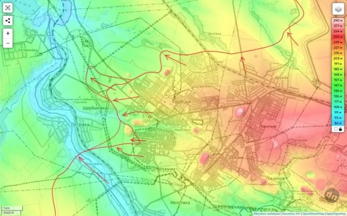 На Торецком направлении вчера кадры объективного контроля подтвердили выход наших передовых частей северо-западнее Торецка (вдоль дороги на Иванополье).