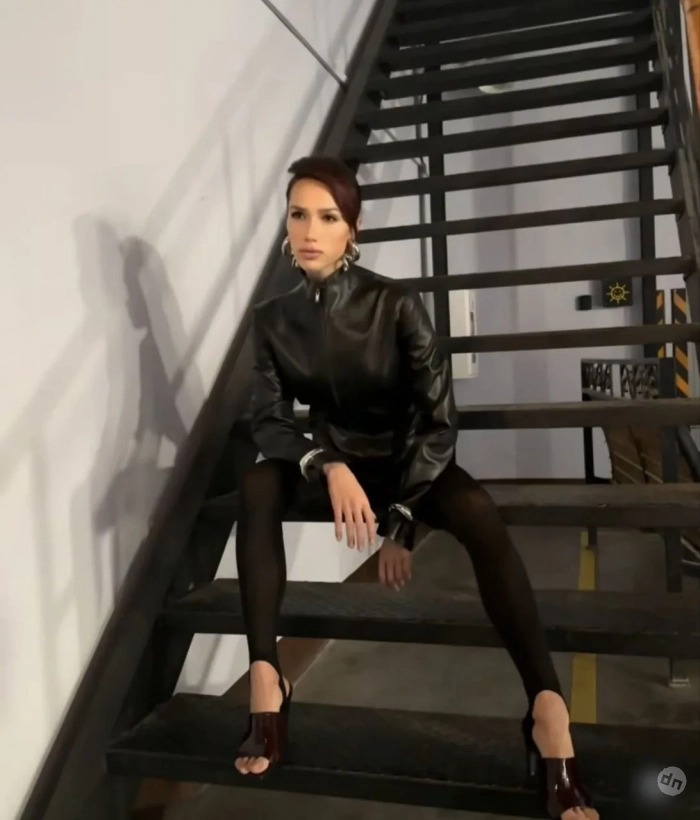 На фото Загитова предстала в кожаной куртке и полупрозрачных леггинсах с убранными в длинный хвост волосами. Она также выложила кадр с бэкстейджа, на котором сидит вместе с сумкой Hermes.