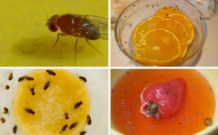 Дрозофилы (плодовые мушки) — ещё один частый «гость» на кухне. Они любят забродившие и переспелые фрукты. Чтобы поймать их, сделайте простую ловушку: