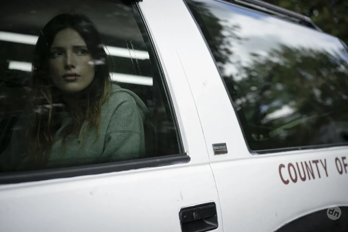 Белла Торн в фильме "Девушка"Белла также упомянула другой эпизод картины, в которой Микки, управляя автомобилем, обрызгал её грязью, ускорившись сильнее, чем требовалось. "Не знаю, наверное, ему казалось забавным унижать меня перед всей командой", — посетовала Торн, отметив, что Рурк смеялся во время инцидента.