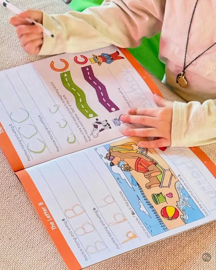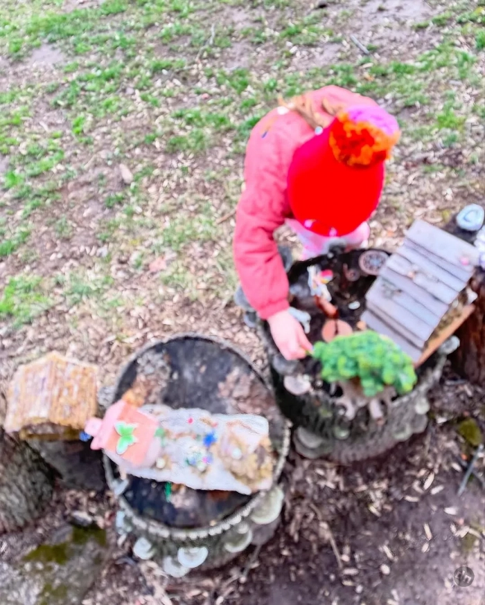 На одном из фото дочь 29-летней том-модели перепрыгивает через лесной ручей, на другом выполняет задание в рабочей тетради. Ещё на одном снимке показан процесс украшения пасхальных яиц.