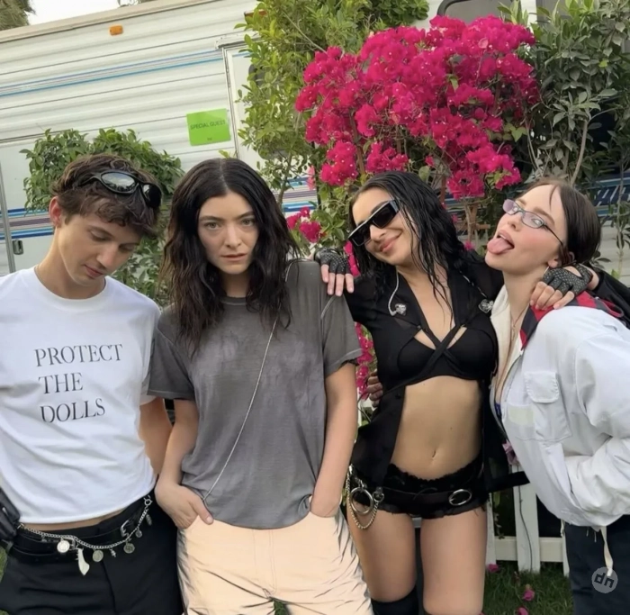 Джулия Фокс, Пэрис Хилтон, Кара Делевинь, Патрик Шварценеггер на фестивале Coachella