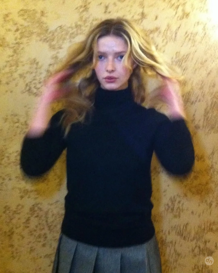 На снимках дочь солиста группы Coldplay Криса Мартина и актриса позирует на улицах Нью-Йорка в бежевой шубе и кружевных белых колготках и в помещении — в чёрной водолазке, кружевном топе и белой теннисной юбке с футболкой.