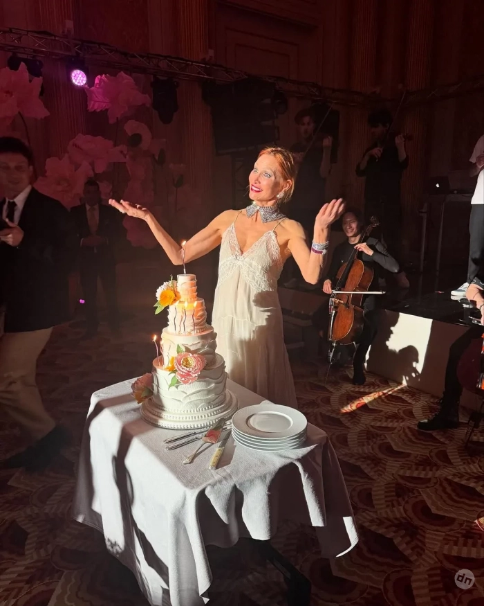 Оксана Бондаренко, Елена Спиридонова и Галина АгаповаЕлена Спиридоноваhttps://t.me/spletnik2006/28738Елена Спиридонова за вечер сменила два образа. На фото с гостями она позировала в серебристом платье без бретелей и бриллиантовом колье, а после задувала свечи на торте в платье-комбинации с кружевом и тоже в бриллиантах.