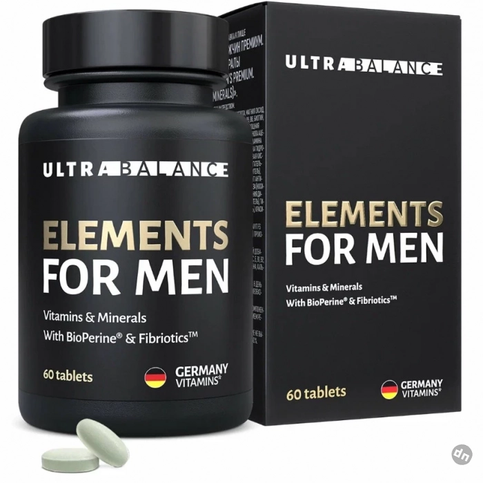 Elements for Men Premium от UltraBalance — это топ бад для суставов и не только: мощная формула для мужского организма работает по всем фронтам. Здесь и BioPerine, ускоряющий усвоение витаминов, и Fibriotics — пребиотик с ферментированной смесью из 36 овощей и фруктов, который влияет на микробиом, метаболизм и иммунитет. Комплекс помогает восстановиться после нагрузок, улучшает мозговую активность, борется с утомляемостью и даже тормозит выпадение волос. Всё продумано, вплоть до оболочки без диоксида титана.