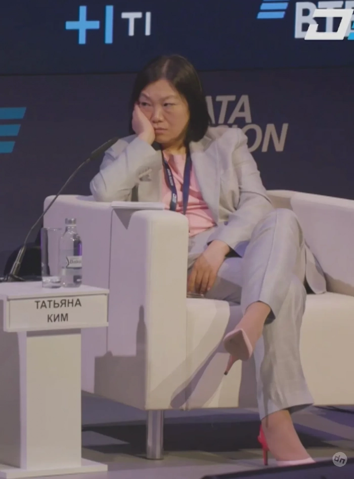 49-летняя соосновательница маркетплейса Wildberries Татьяна Ким выступила на конференции ВТБ Data Fusion, где вместе с другими спикерами (среди которых была и глава ЦБ России Эльвира Набиуллина) обсудила платформенную экономику, персональные данные и их безопасность. Ким надела на мероприятие светло-серый брючный костюм, который дополнила розовой футболкой и туфлями на каблуках.