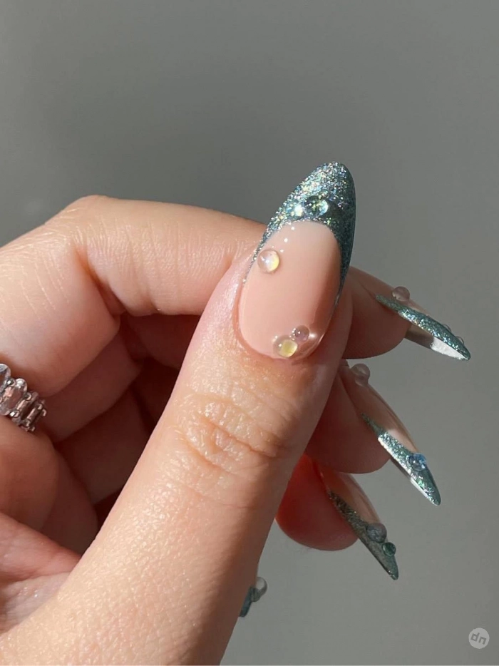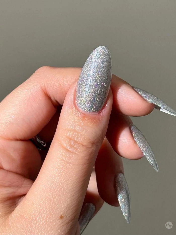 Для невест, которые хотят сиять, как сама любовь, — маникюр с серебряным глиттером. Используйте перламутровый лак или пигмент с крупными блестками, чтобы добиться нужного эффекта. Идеально для вечерней церемонии или свадьбы в стиле гламур.