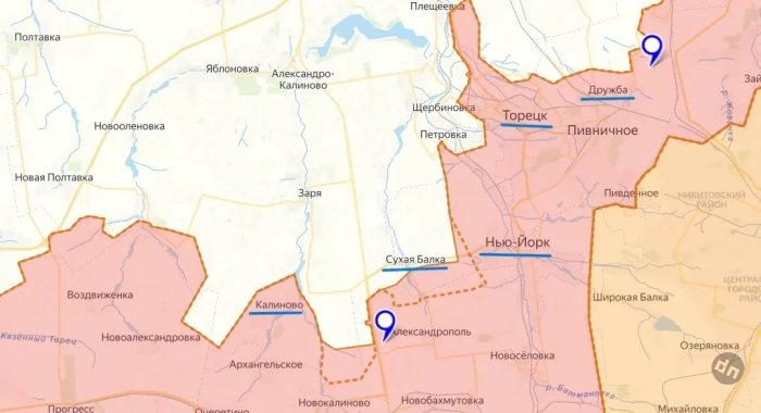 Подразделения ВС России «срезали» выступ на линии обороны ВСУ между Сухой Балкой и Нью-Йорком (пгт Новгородское) на Дзержинском направлении ДНР (украинское название Дзержинска – Торецк). Противнику пришлось с боями отойти за трассу, соединяющую Новгородское (Нью-Йорк) и Калиново.