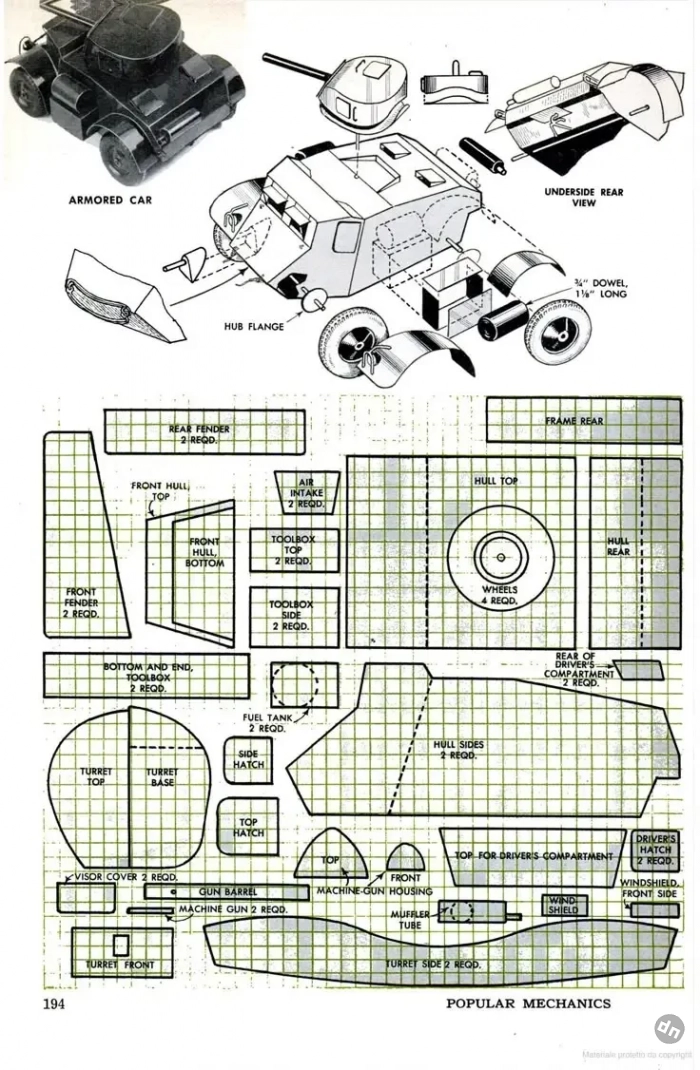 Были в журналах самоделки для взрослых. Были и для детей. Например – вот такой игрушечный танк