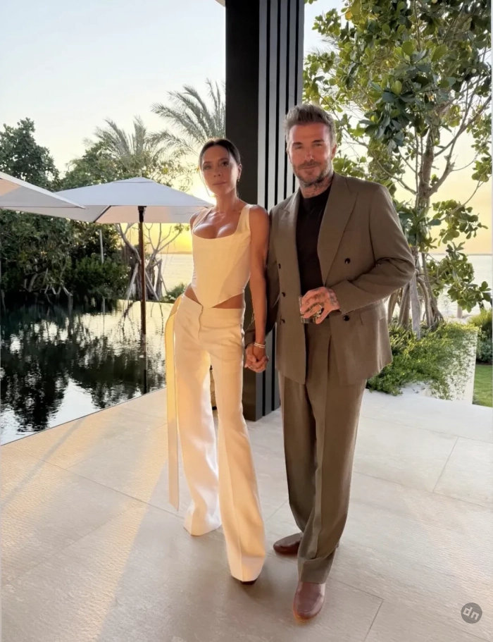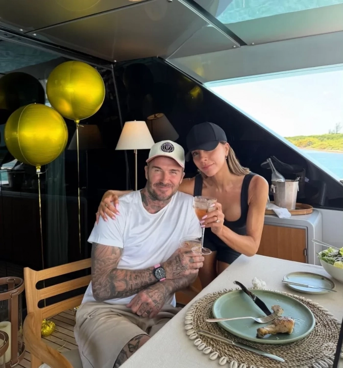 Сначала семья в узком кругу отметила праздник на яхте, предположительно, в Майами, где Виктория задула свечу на небольшом торте. Ближе к вечеру Бекхэмы переместились на вечеринку, где собрались близкие друзья, а Виктория появилась перед гостями в белых брюках и корсете: в этом образе её невестка Никола Пельтц выходила на премьеру своего фильма "Лола"в прошлом году.