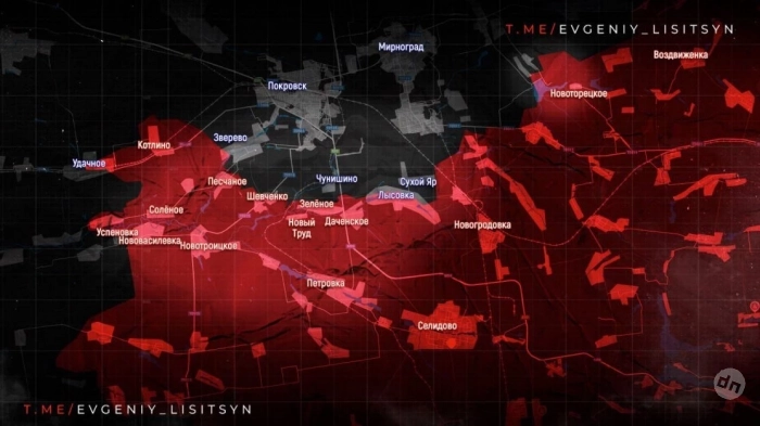 Южнее Покровска (Красноармейска) ВС России после накопления резервов возобновили атакующие действия пехотой и техникой в направлении границы Днепропетровской области, действуя у Котляровки и южнее Серебряного, сообщает Telegram-канал "Два майора".
