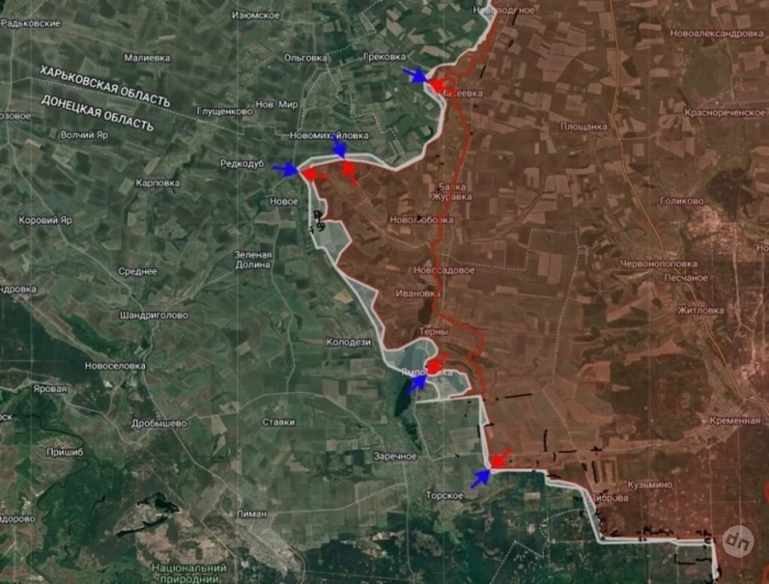 Южнее, на Константиновском направлении ВС России развивают успех в Сухой Балке, сообщали о боях в районе Тарасовки.