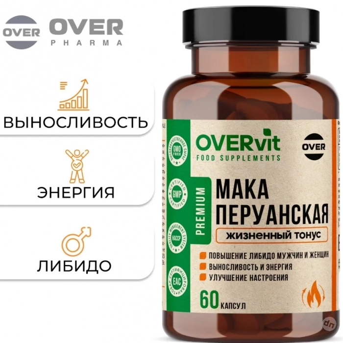 «Мака перуанская» от OVER — эффективная биологически активная добавка, которая заслуженно входит в топ БАДов для потенции мужчин. Продукт усиливает выработку АТФ, повышая энергетический потенциал организма и улучшая выносливость. Благодаря высокому содержанию алкалоидов, мака положительно влияет на уровень половых гормонов, усиливает либидо и способствует нормализации репродуктивной функции. В составе также есть витамины и аминокислоты, что делает препарат полезным не только для сексуального здоровья, но и для общего укрепления организма.