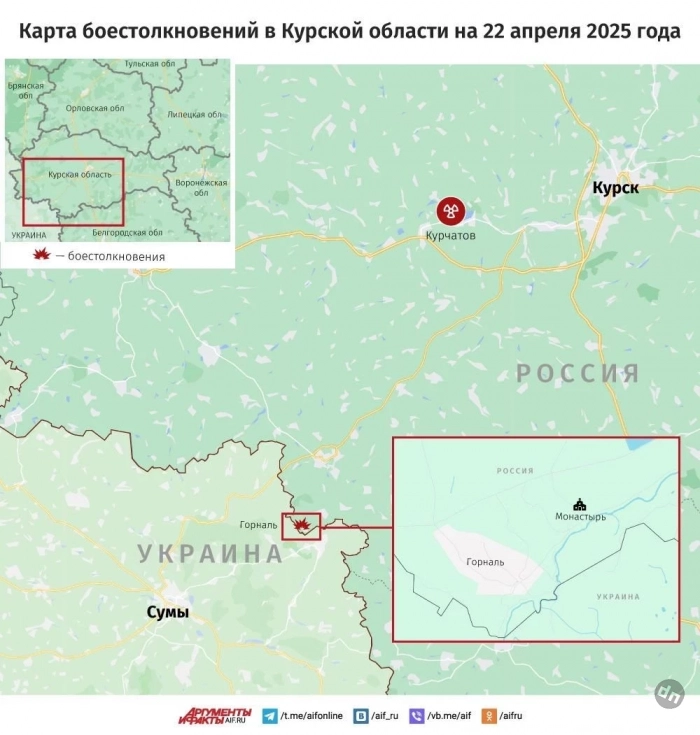 Свежая карта боевых действий в Курской области. Данные на сегодняшний день, 22.04.2025
