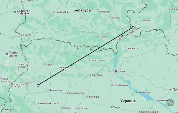 Ближайшая к границам России точка траектории его полёта (если мониторинговые ресурсы корректно эту траекторию отображали), находилась на расстоянии 550 км. Соответственно, ближайшая точка РФ – юго-запад Брянской области.