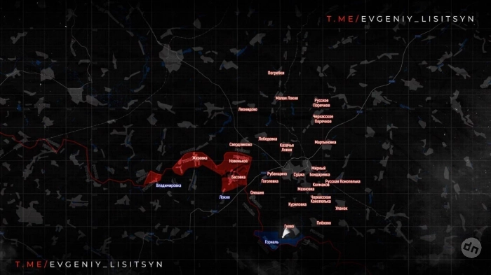 В районе хутора Олешни российские войска продвигаются по лесным массивам и балкам. Враг постоянно подтягивает подкрепления из Сумской области, идут тяжёлые бои. Тем не менее, наши части постепенно зачищают участок вдоль госграницы.