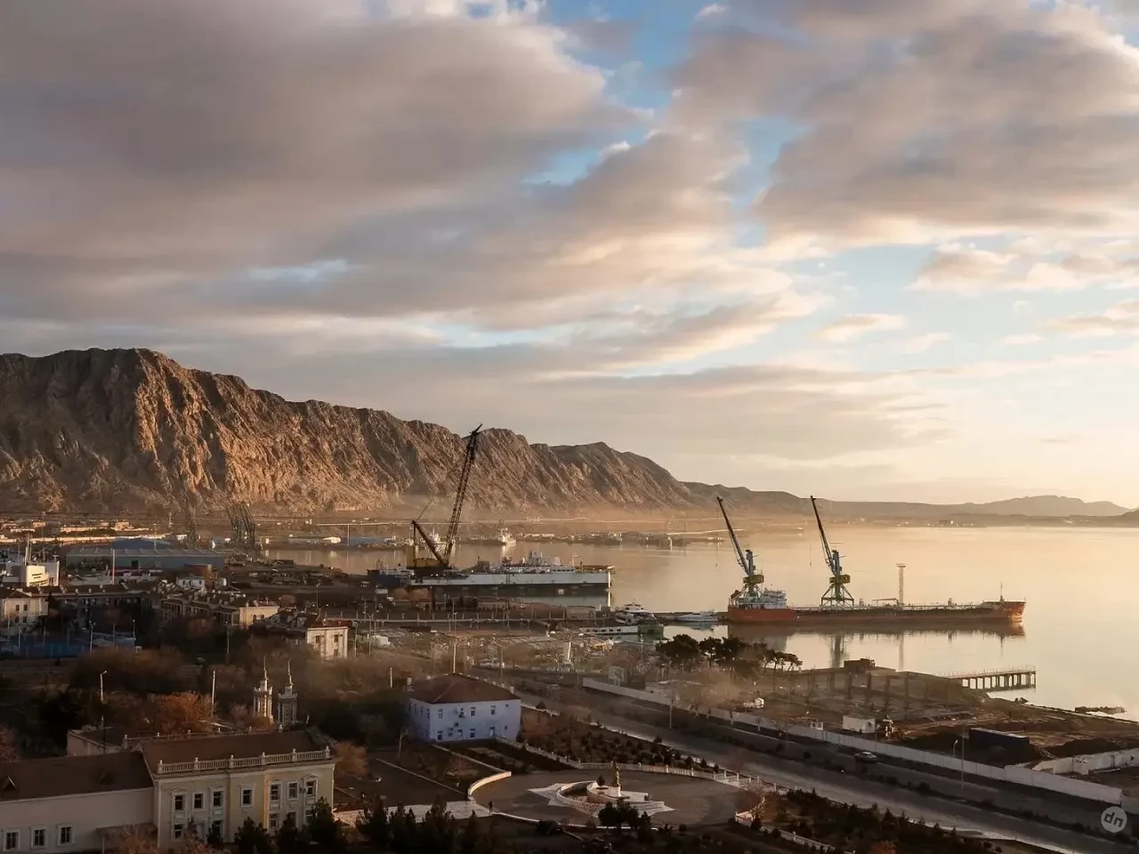Современный вид портовой зоны Туркменбаши. В 2013-2018 годах порт был реконструирован и уже мало чем напоминает тот порт, который был в военные годы