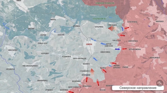 На Северском направлении ВС РФ ведут бои за контроль над западными отрогами горы Белой. Западнее наши штурмовики продвигаются к Григоровке, сообщает в своём Telegram-канале Олег Царёв.