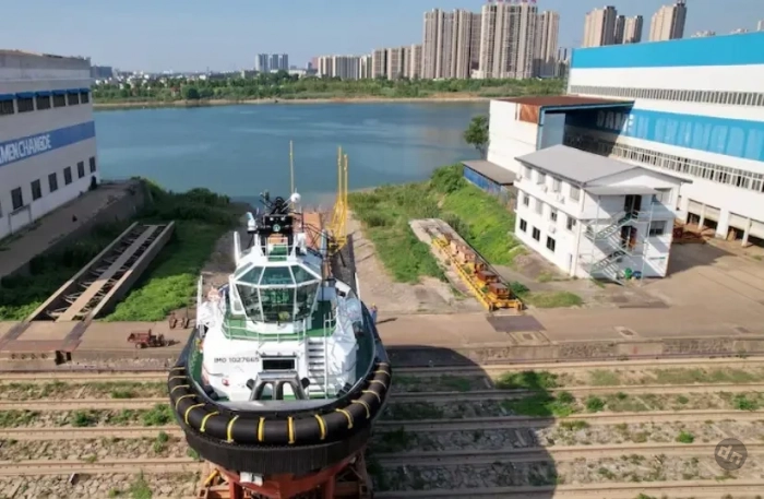 В них указывается, что первый из трех портовых буксиров был построен на заводе компании Damen, расположенном в Чанде, в китайской провинции Хунань в конце декабря. Факт того, что судно строилось в Китае, не стал широко афишироваться.