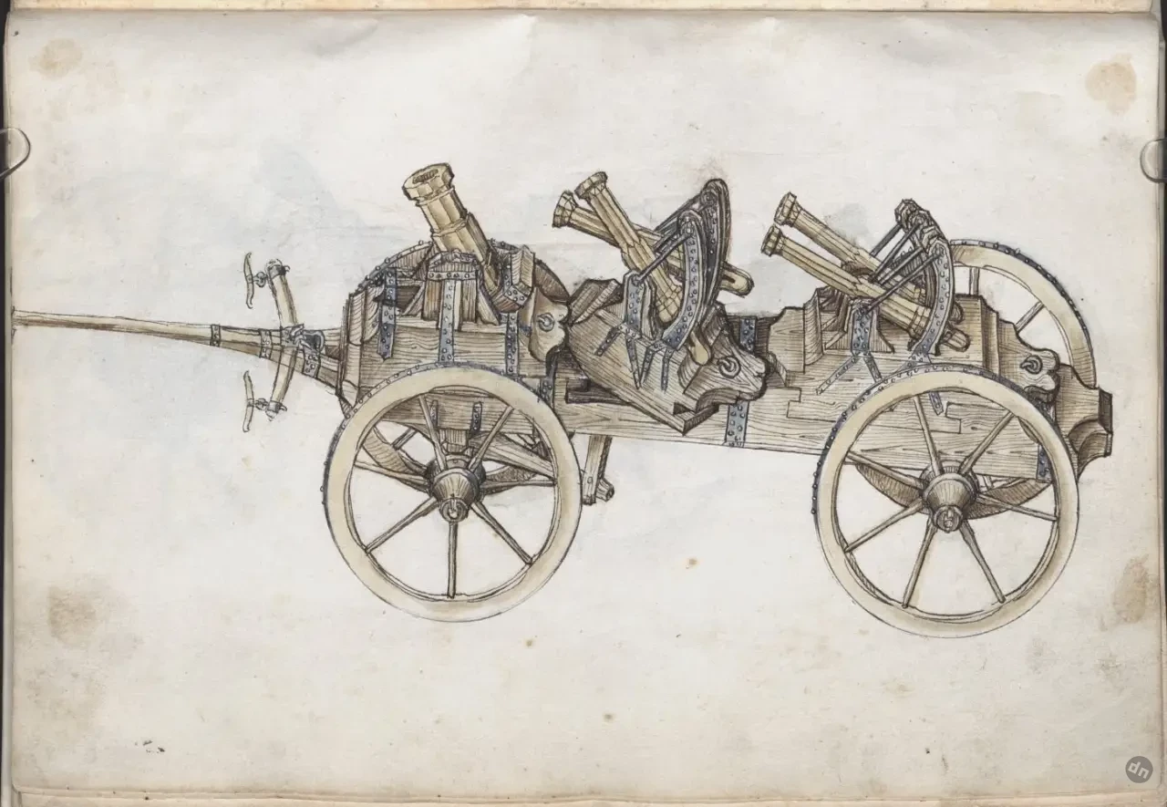 Читающее Средневековье. «Книгу фейерверков» написал германский оружейник Мартин Мерц. Издана она была в 1473 году, то есть еще до того, как Средневековье завершилось плаванием Колумба в Новый свет. Кого-то такая датировка не устраивает, ну, как говорится, пусть это будет на их совести. В любом случае на ней имеется датировка. Писал ее профессиональный оружейник, и, видимо, он же ее и оформлял, то есть сделал все приведенные на ее страницах рисунки. А иллюстраций с изображением различного оружия в этой книге очень много. К тому же в ней еще приведены их описания и указания по тактике применения. Есть образцы и явно фантастических устройств, достойные киноленты «Кровь и плоть». Но есть среди них и вполне реалистичные, которые могли быть сделаны в дереве и металле. Во всяком случае, этот манускрипт дает наглядное представление о том уровне военного дела в области использования огнестрельного оружия, который имел место в Европе в конце XV века.