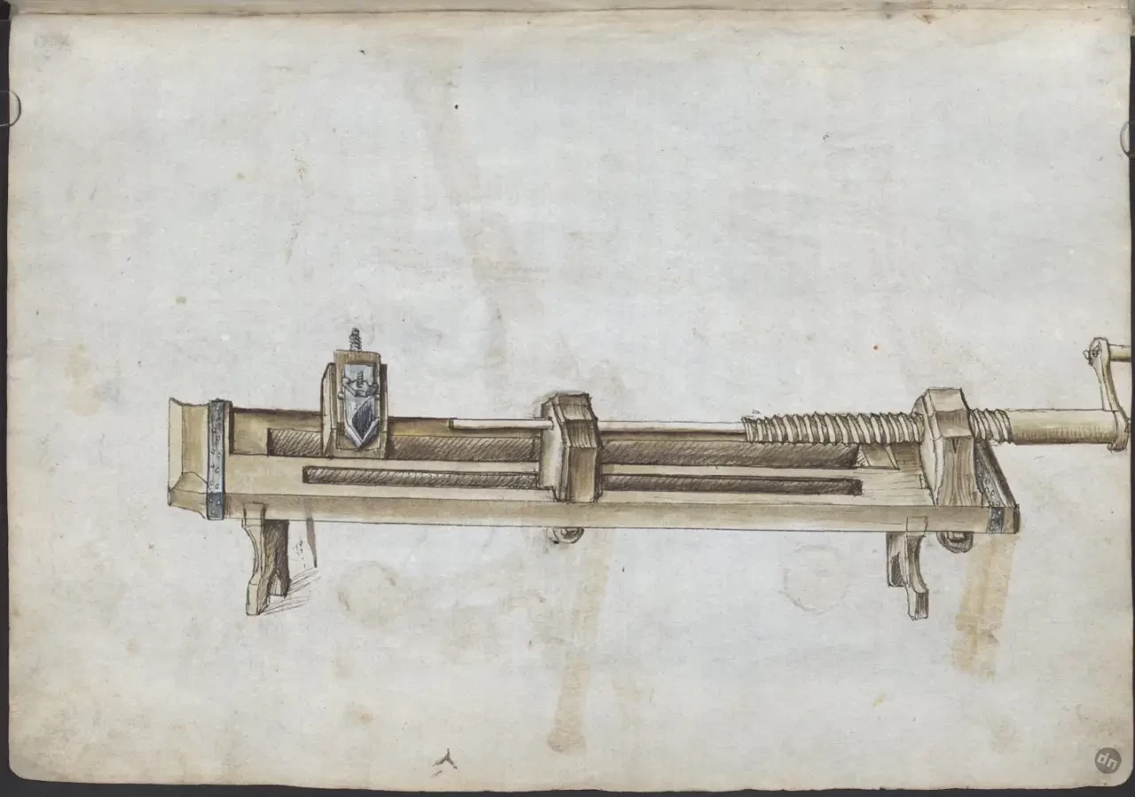 Очень точное изображение тогдашнего ручного огнестрельного орудия типа карабина. То есть на момент написания этой книги подобные «ружья» уже существовали…