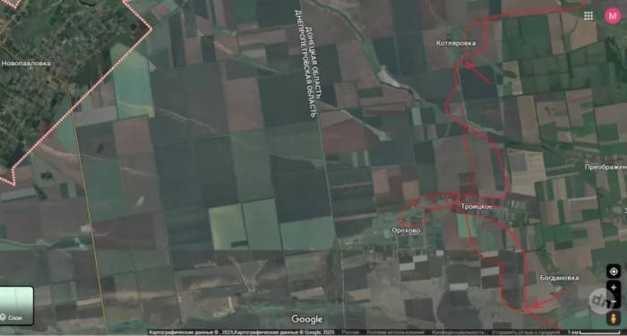 Штурмовые группы, закрепившись в ранее освобожденном селе Троицкое, вошли в северо-западную часть села Орехово - последнего населенного пункта перед административной границей Днепропетровской области. На данный момент передовые позиции российских штурмовиков находятся менее чем в 2 км от границы, а от Орехова до неё остается всего около 500 метров.