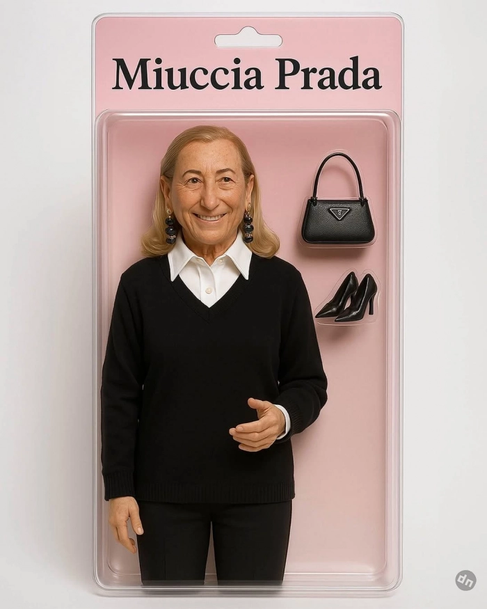 Следом за мемами и мультяшными картинами появились изображения знаменитостей в виде коллекционных кукол. Дональд Трамп, Карл Лагерфельд с кошкой Шупет, Жан-Поль Готье с фирменным парфюмом, Рик Оуэнс с гантелями — кажется, кукольный мир теперь открыт для всех. ИИ безошибочно копирует внешность, любимые аксессуары и даже стилизует упаковку фигурки в стиле настоящего магазина игрушек.