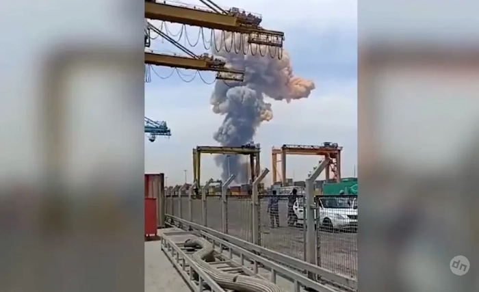 Очевидцы выкладывают в сеть кадры с большим густым облаком дыма, поднимающимся на месте взрыва в порту близ Бендер-Аббаса.