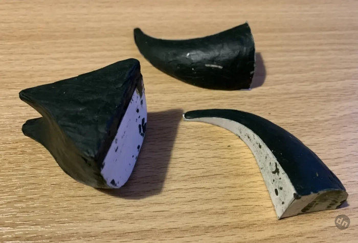 Оконечности носа и кормы проще слепить из пластилина, затем заморозить их в холодильнике и, смазав маслом, залить растопленным парафином. Таким образом у нас получатся четыре формы, в которые нужно будет вдавить самополимеризующуюся глину (продаётся в тех же магазинах «Леонардо») и оставить до её полного затвердевания. Готовые оконечности склеиваются друг с другом, после чего приклеиваются к средней части корпуса.