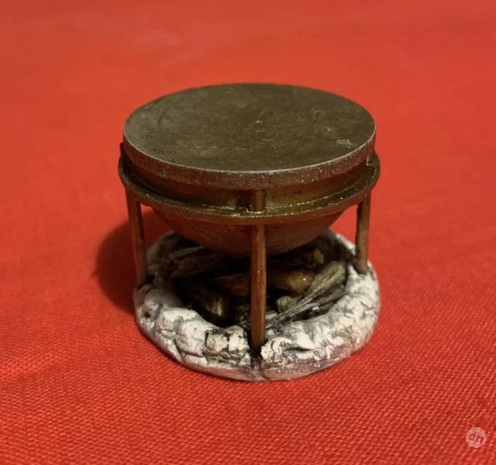 Паровой котёл – половинка деревянного шарика, покрашенная под бронзу. Очаг – всё та же самополимеризующаяся глина…