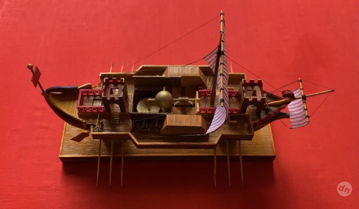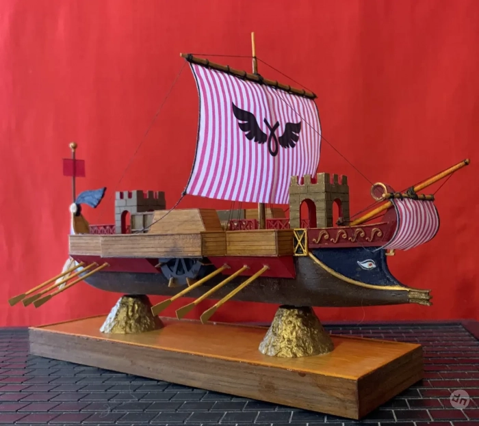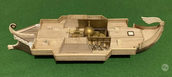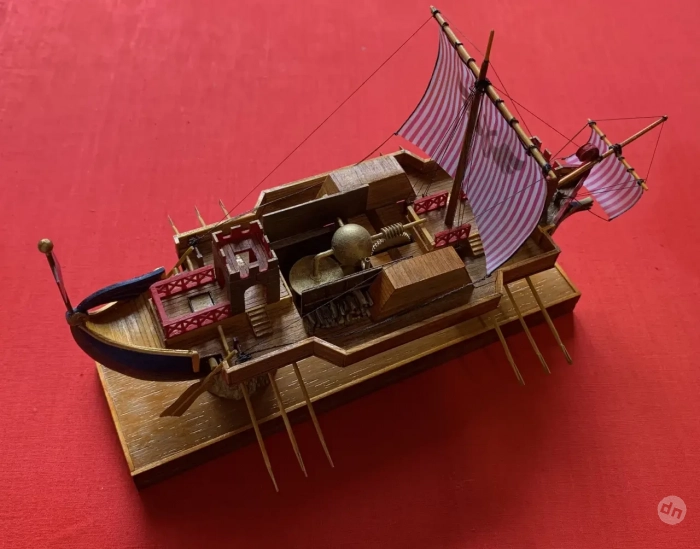 Понятно, что будь это реальный корабль, к нему можно было бы придираться и придираться – и это не так, и другое не… эдак. Но рассматривать его нужно именно как иллюстрацию того, что мы называем «полётом фантазии», не более. Ну а ребятам, когда они будут изучать греческую культуру в рамках школьного учебника и знакомиться с Архимедом, совсем не помешает ещё и увидеть эолипил Герона и даже пофантазировать на тему: «А как бы это мог на самом деле выглядеть его корабль, если бы он всё-таки был бы построен?».