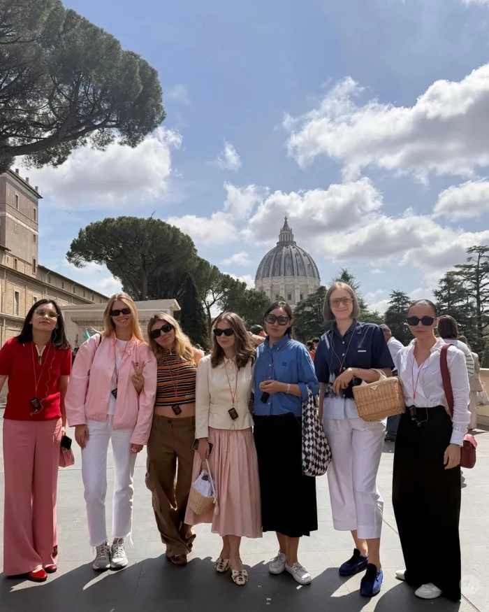 Подруги Ксении получили приглашения в праздничную поездку в виде брендированных коробок с пиццей с открытками из "Римских каникул". В Италии компания посетила выставки Караваджо в палаццо Барберини и Трейси Эмин в палаццо Строцци, сходили на экскурсию по Ватикану с посещением Сикстинской капеллы, провели день в галерее Уффици во Флоренции. "И всё это бесшовно соединено красивыми обедами, коктейлями и ужинами в знаковых локациях Рима и Флоренции", — рассказала Надежда Стрелец.