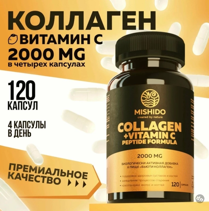 MISHIDO Beauty Collagen — это мощный комплекс, который сочетает коллаген и витамин С, поддерживающий здоровье суставов, кожи, волос и ногтей. Содержание гидролизованного коллагена (2000 мг в 4 капсулах) и витамина С способствует улучшению эластичности кожи, укреплению волос и ногтей, а также улучшению подвижности суставов. Этот продукт идеально вписывается в рейтинг бадов для волос, оказывая комплексное влияние на внешний вид и здоровье. Идеален для людей всех возрастов.