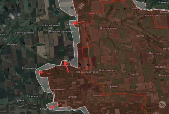 На Покровско-Новопавловском направлении отмечаются боестолкновения в районе Елизаветовки. Продолжаются встречные бои южнее Покровска по линии Лысовка-Шевченко-Зверево. Под контроль российских войск перешла Надеждинка, а также участок местности севернее упомянутого населённого пункта. Продолжаются боестолкновения в Котляровке и западнее Богдановки.